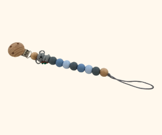 Crafted from high-quality, food-grade silicone beads and finished with a sturdy wooden clip, it’s both practical and beautiful — helping keep dummies close while adding a soft, modern touch to baby essentials.