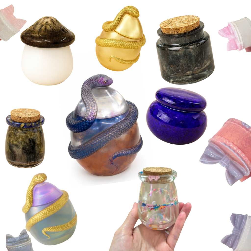 snake pot- goldsnake pot- metallicsnake pot- blue clear and orange translucentmushroom pottrinket bow pot- white and pinktrinket bow pot- Bright pink and purpletrinket bow pot- light metallic white and pinktrinket bow pot- purple greytrinket bow pot- lilac and snowmetallic purple potpotion jar- candypotion jar- bronze and gold galaxypotion jar- metallic black swirl+ 10 more