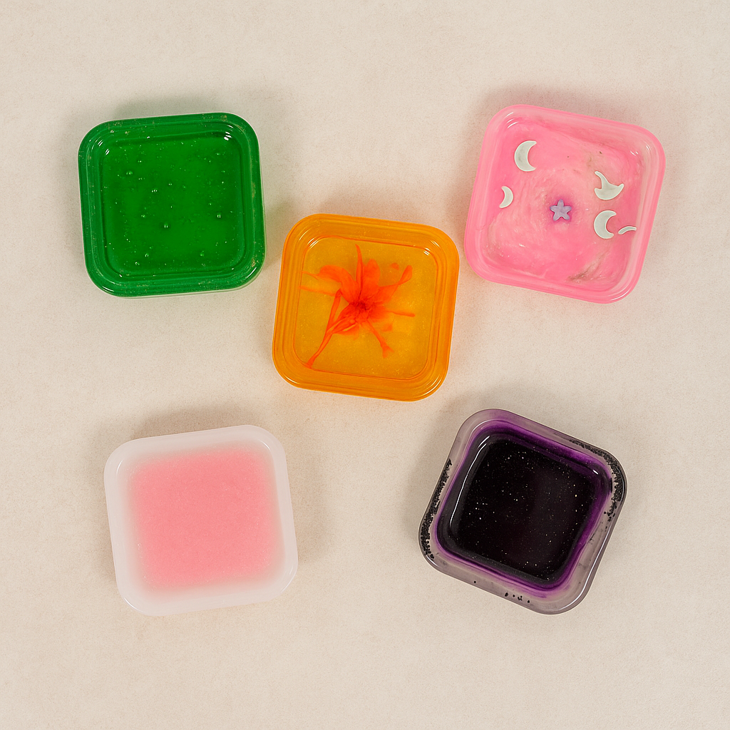 Transparent Green with stonesYellow with hot pink swirlsBright Pink with Stars and MoonsDeep Purple with crushed obsidianHot Pink with iridescent Cream+ 2 more