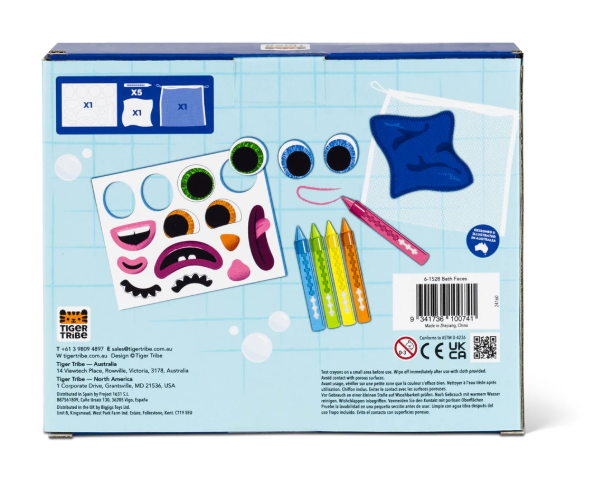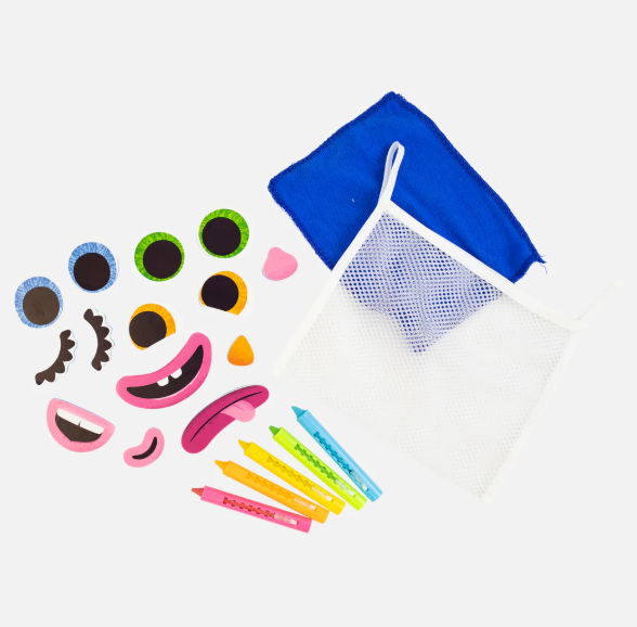 With 14 different EVA foam face features that stick directly to wet bath or tiles (including eyes, mouths, noses and eyebrows) and five of our best-selling bath crayons included, kids can create a gallery of funny face portraits —no rules, anything goes!