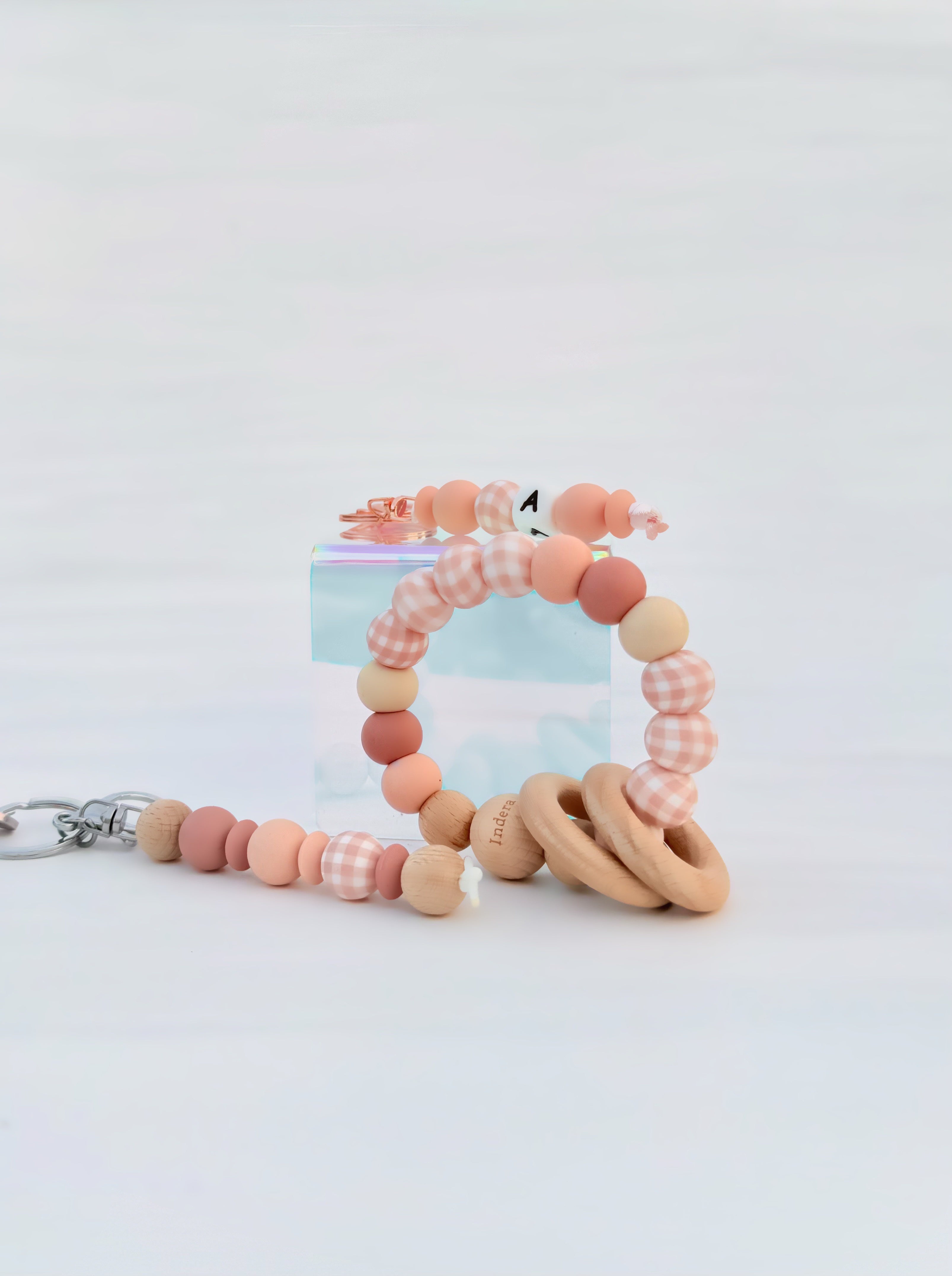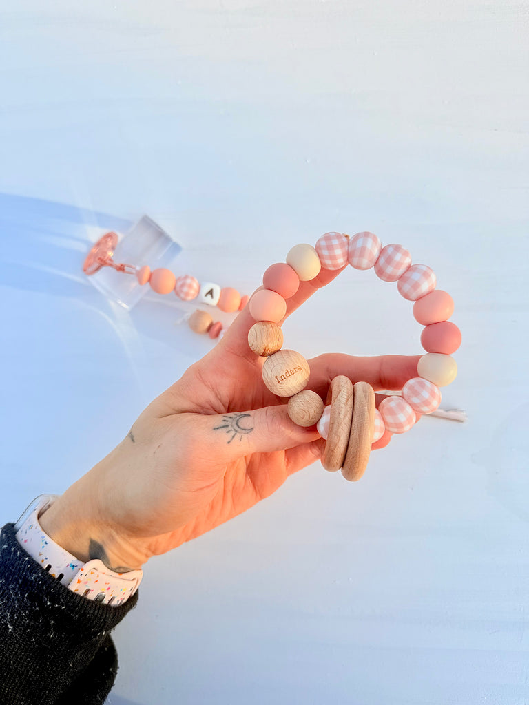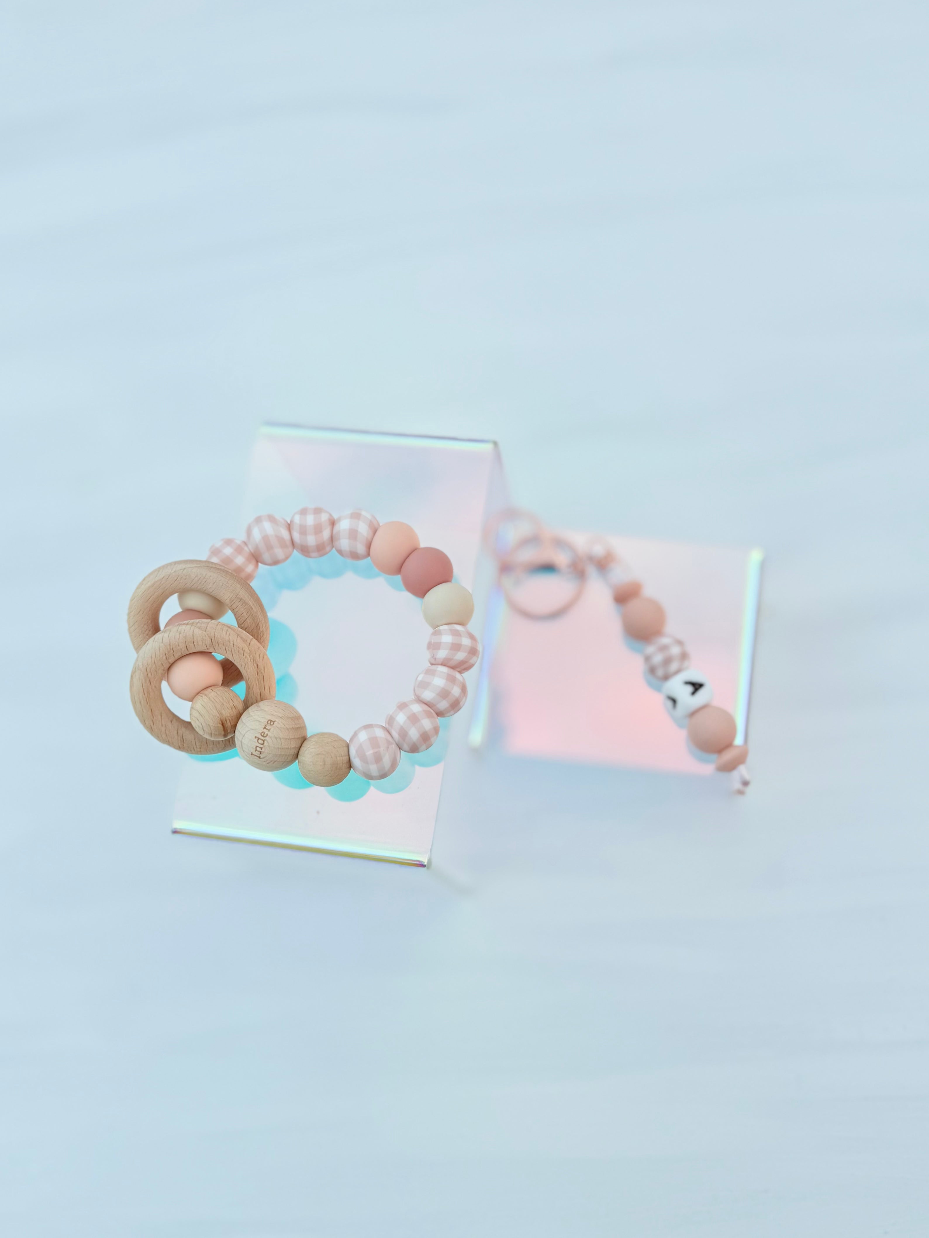 Our Blush Gingham collection is a love letter to slow days, warm sunshine, and timeless play. Featuring our signature handcrafted teething and keyring designs, this limited edition blends soft blush tones with classic gingham detail — the perfect balance of nostalgia and modern charm.
