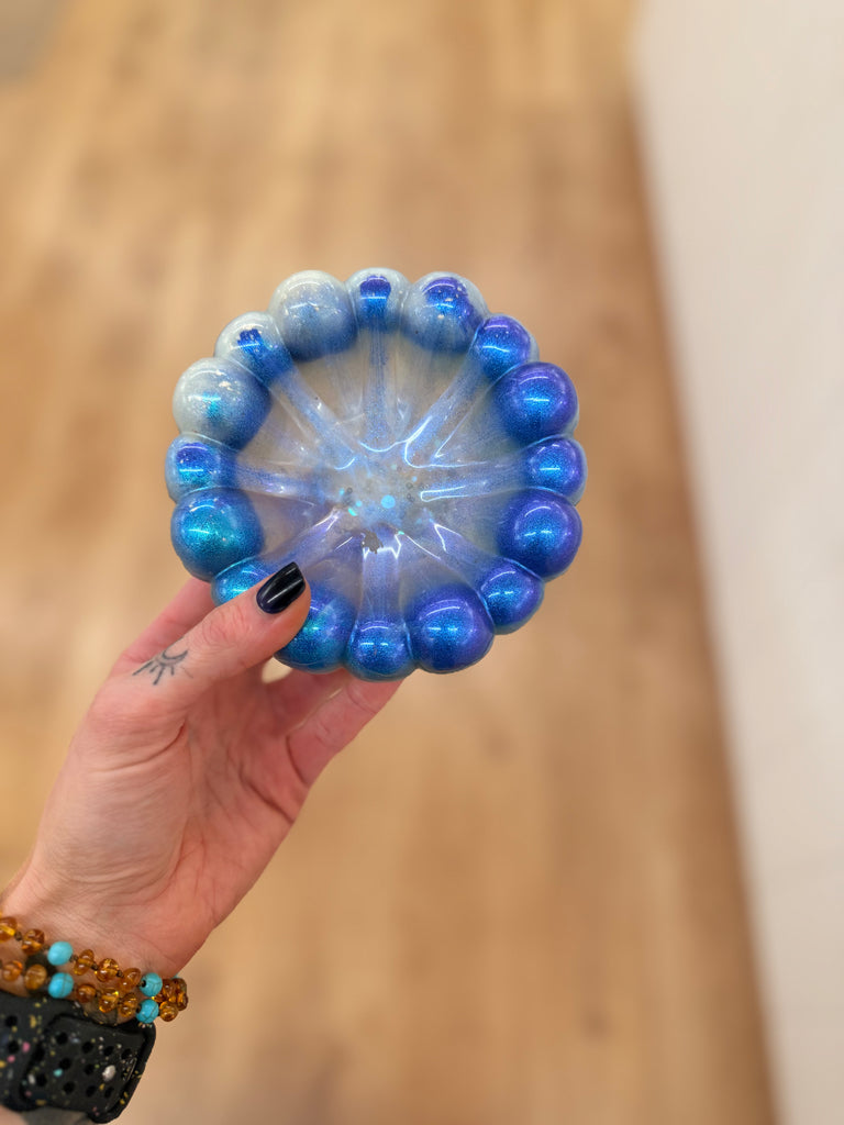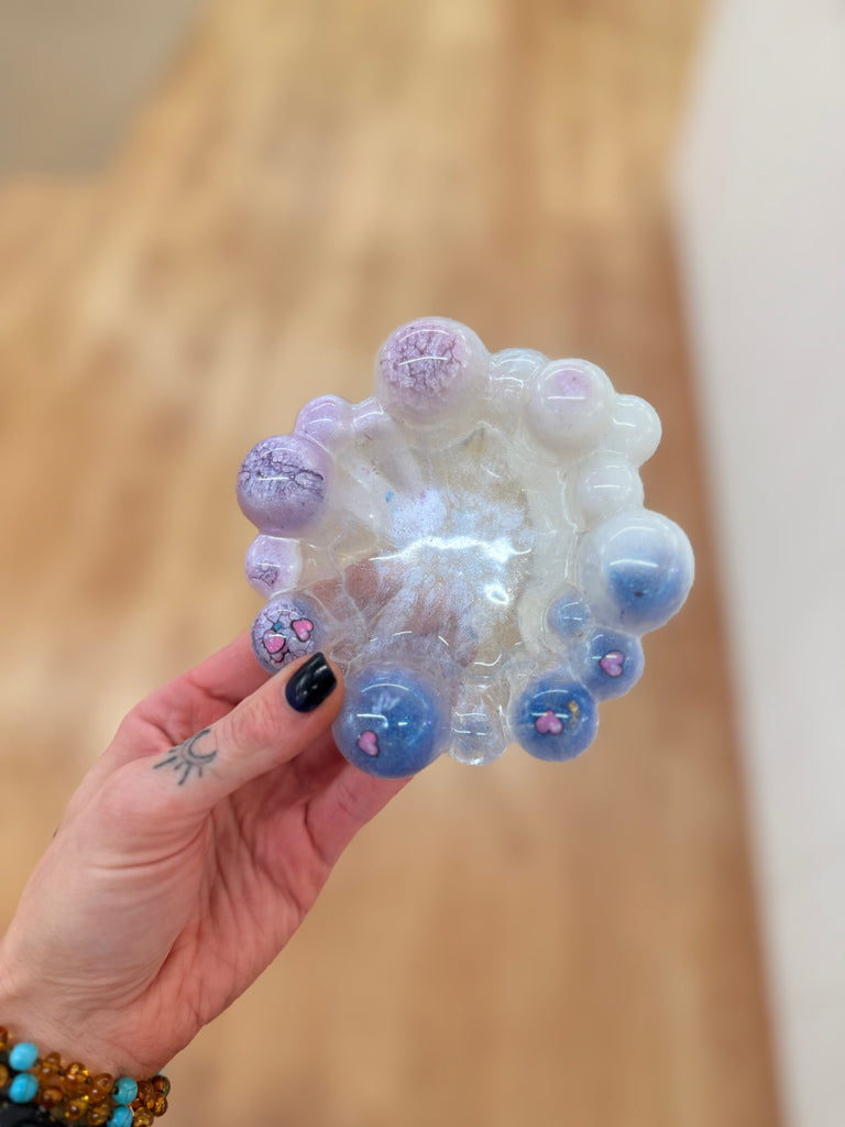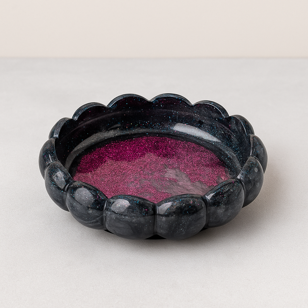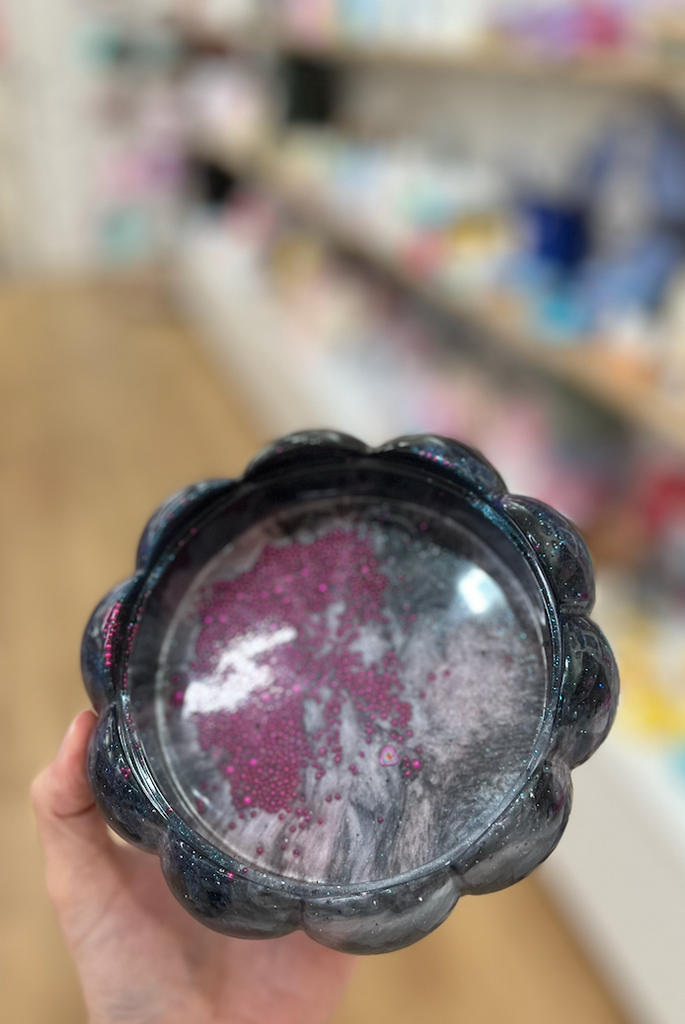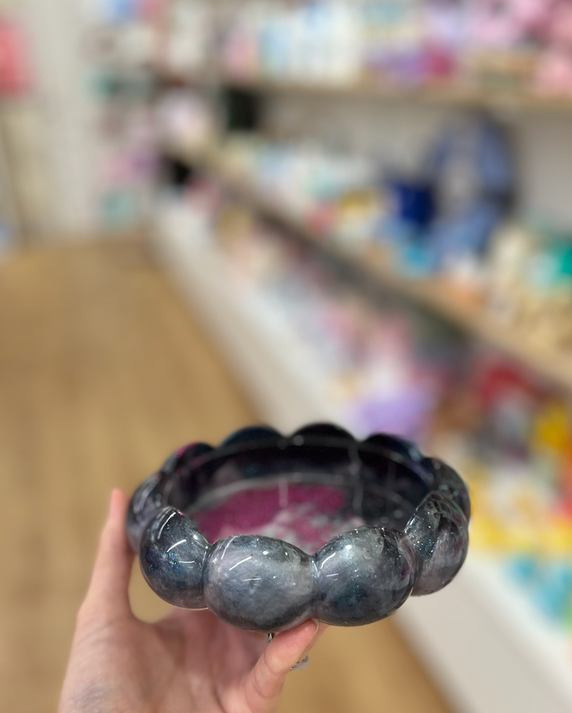 Resin creates tiny air pockets when poured — in this design, those bubbles are intentional! The rounded edges form as the resin naturally settles around the mould, giving each bowl a perfectly imperfect, organic “bubble” shape that’s irresistibly touchable.