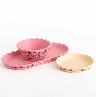 Our brand new kids dinnerware sets comes as a set of three complete with with 1 x serving platter, 1 x plate and 1 x bowl. Matching smoothie cup NOT included.