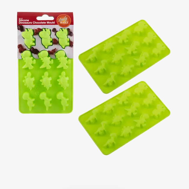 • Set of two BPA-free and food-grade silicone chocolate mould with 12 dinosaur-shaped cups each