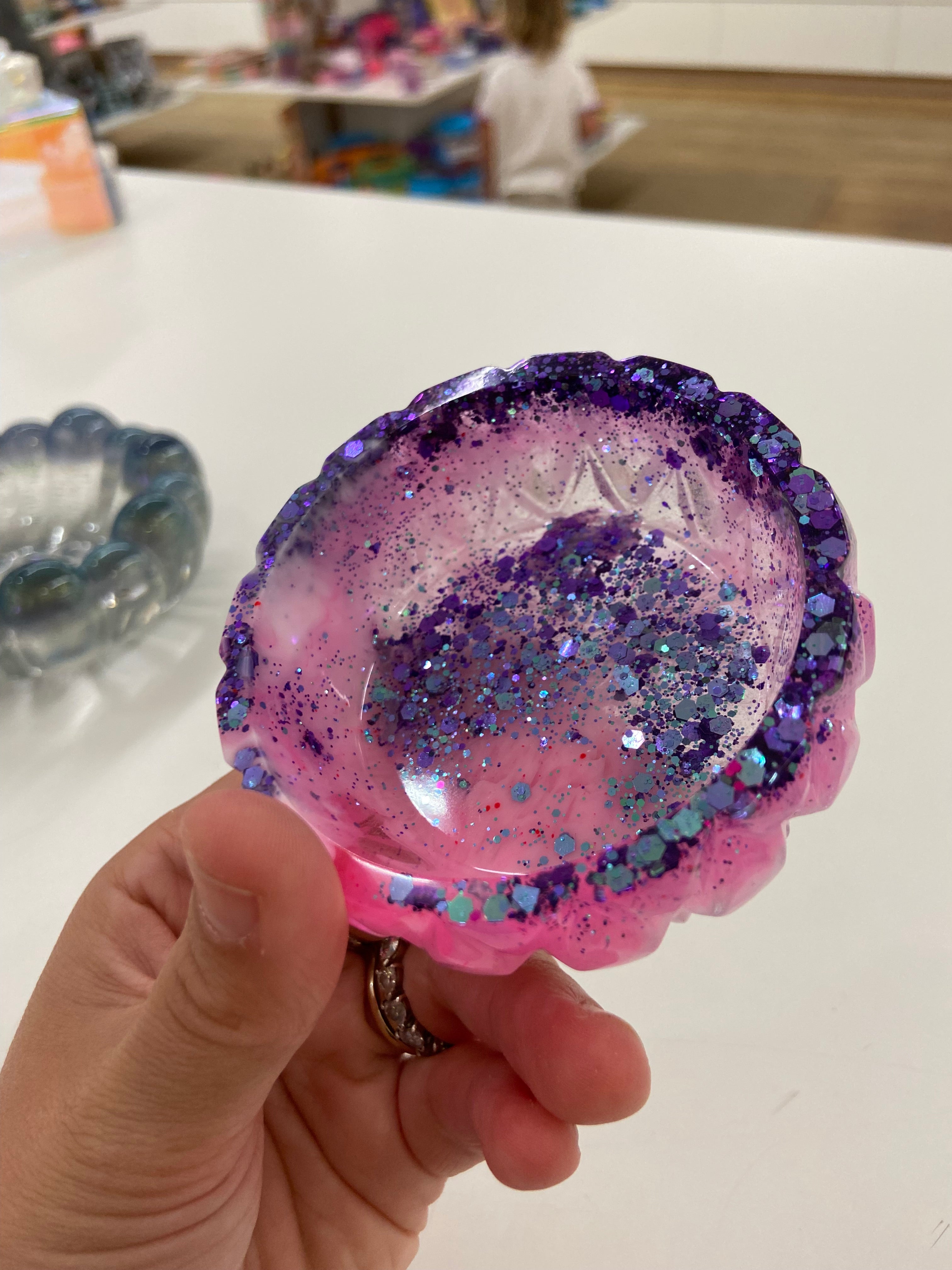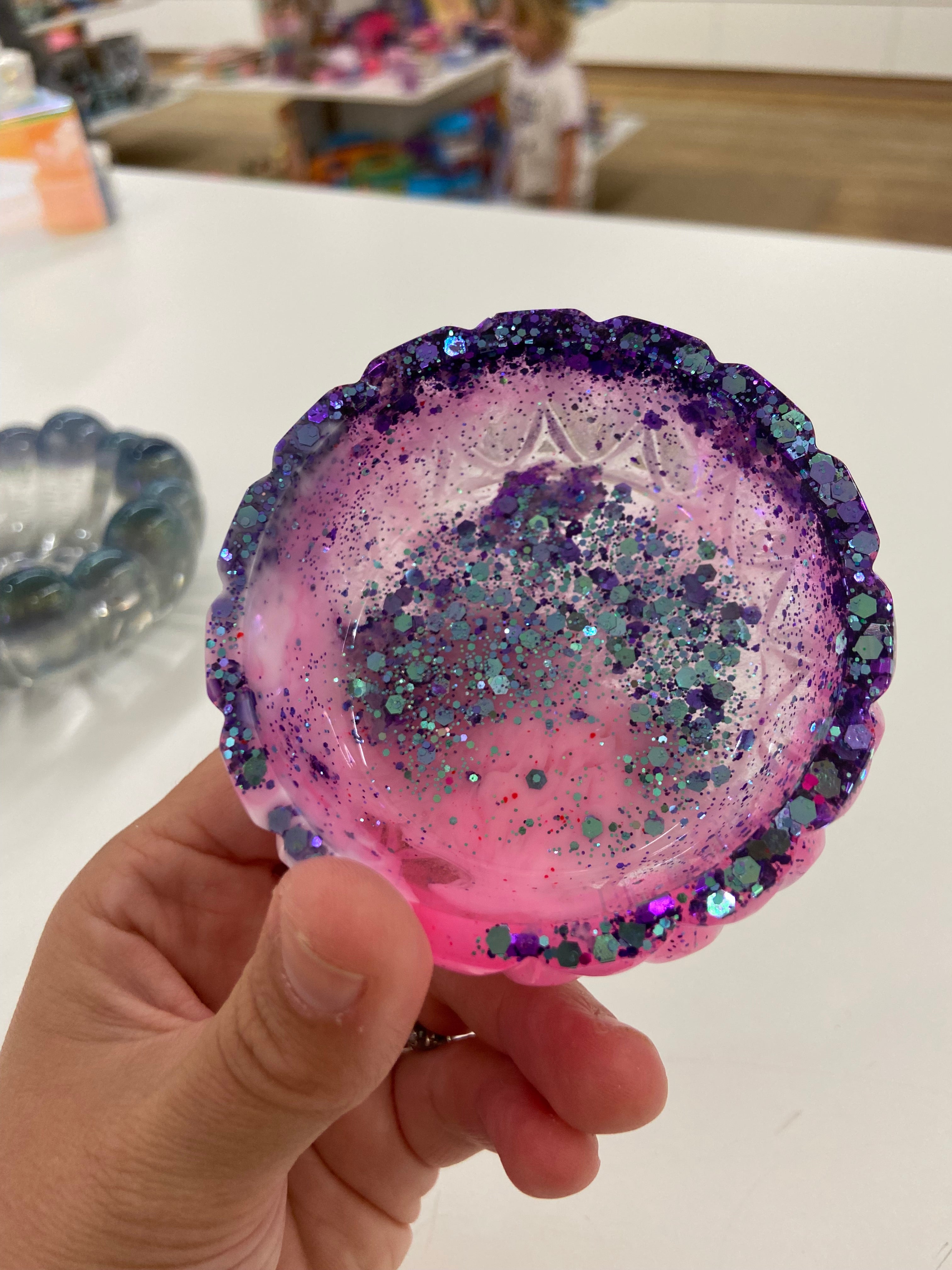 Resin creates tiny air pockets when poured — in this design, those bubbles are intentional! The rounded edges form as the resin naturally settles around the mould, giving each bowl a perfectly imperfect, organic “bubble” shape that’s irresistibly touchable.