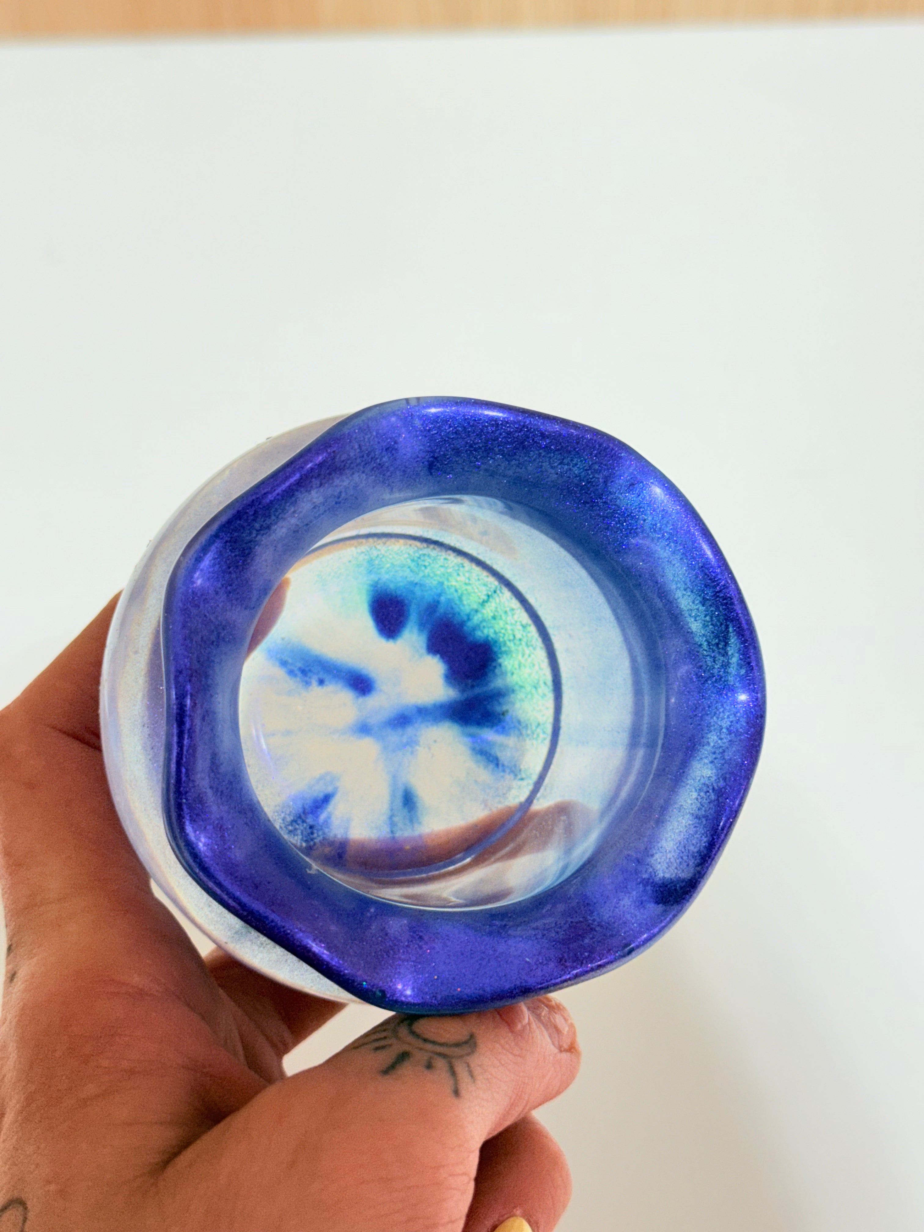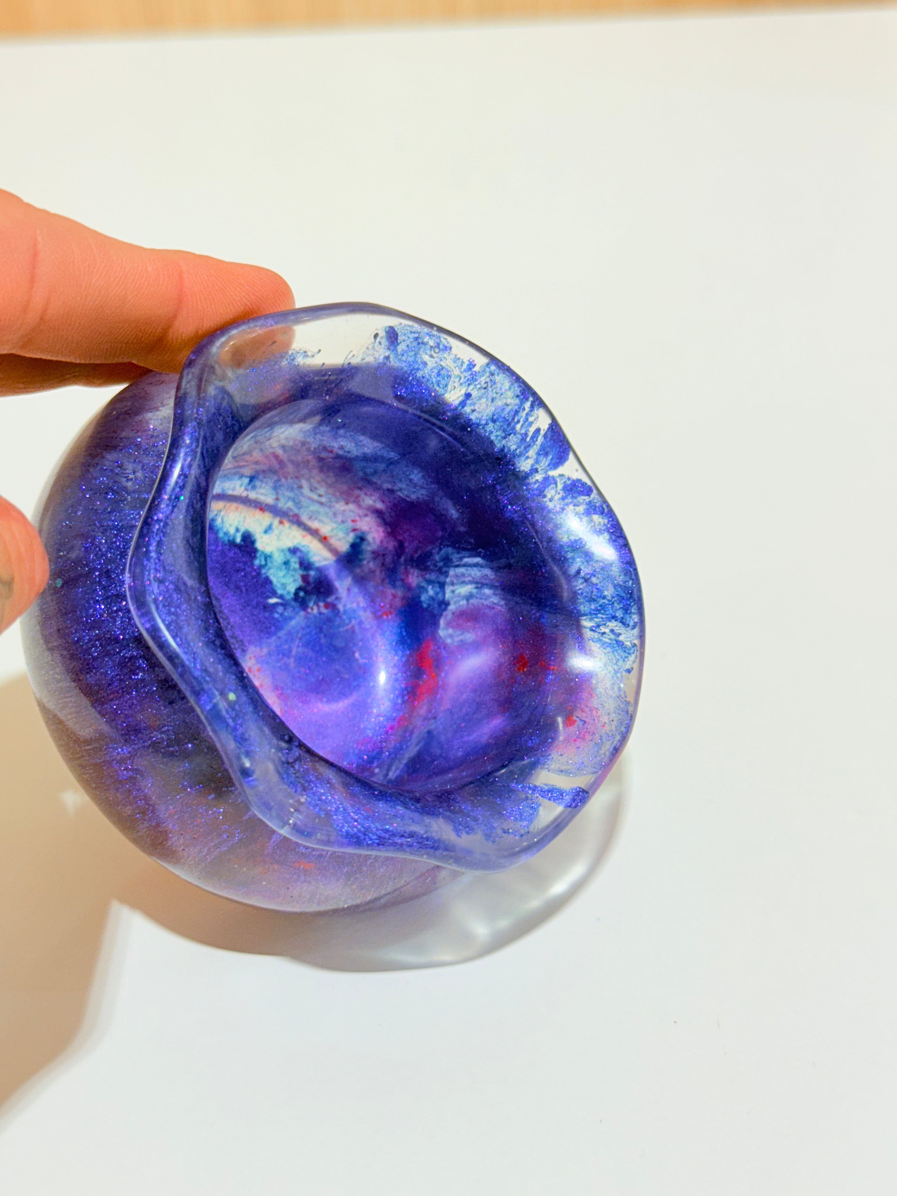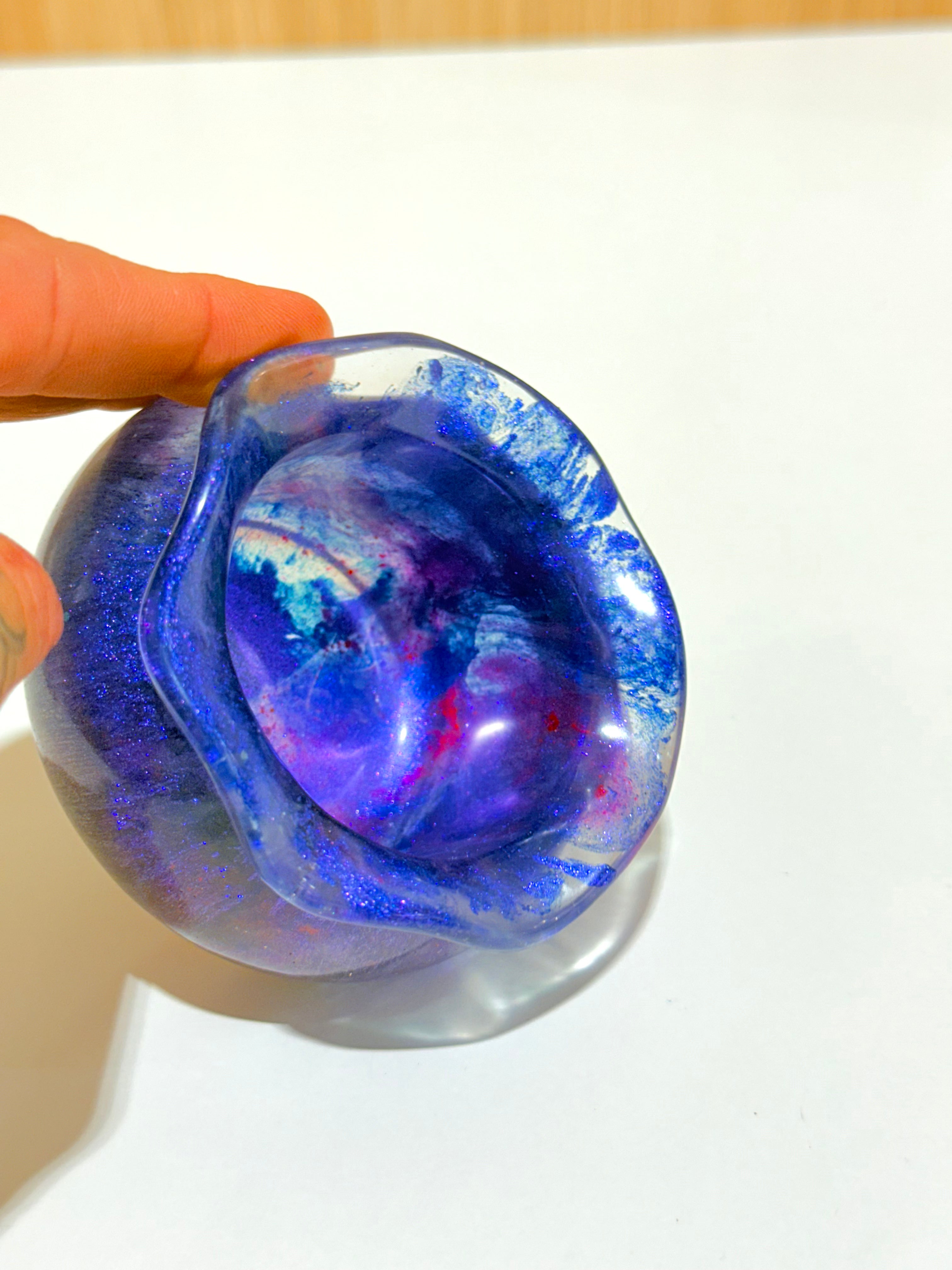 Each Treasure Sack Resin Pot is handmade and unique. Color placement, swirls, and glitter will vary from piece to piece—this is part of their charm and magic. You will receive a similar style to those pictured, but not an exact duplicate.