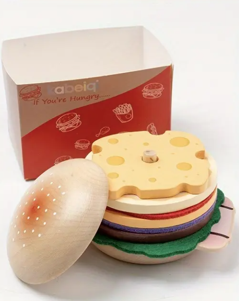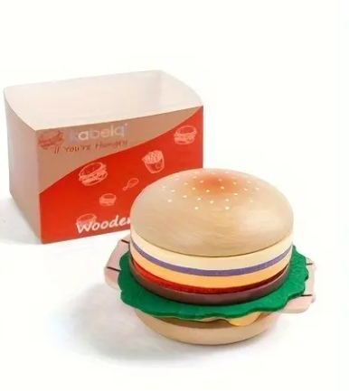 Serve up endless imaginative fun with the Wooden Burger Toy—a delightful play-food set perfect for little chefs and pretend kitchens. Featuring a mix of wooden and soft felt ingredients, children can build their own burger creations again and again. A clever central wooden piece helps hold the stack together, making it easy for little hands to assemble, serve, and play. Ideal for role play, kitchen play, and storytelling, this burger set adds delicious creativity to any playtime.