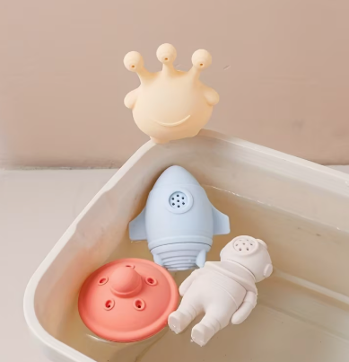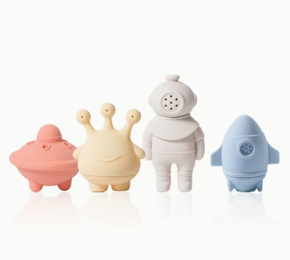 Blast off into bath time with our colourful space-themed silicone bath toys! Featuring a cheeky monster, a rocket ship, an astronaut, and a flying saucer, these clever toys pull apart for easy cleaning—so no hidden spots for mold or grime.