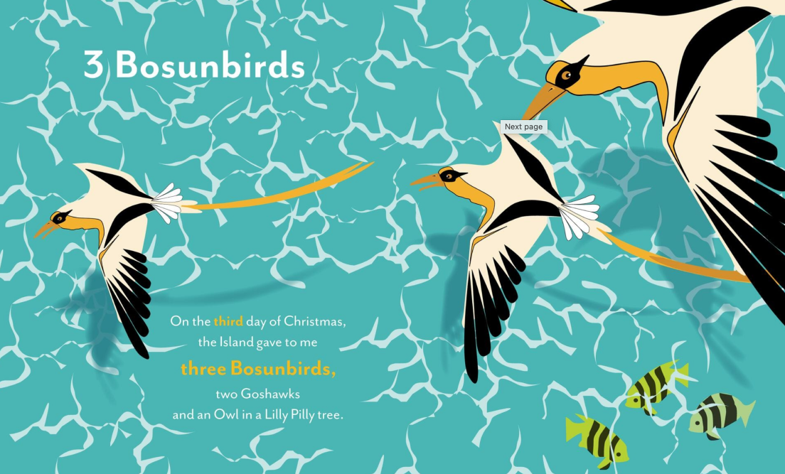 On the first day of Christmas, the Island gave to me, an owl in a Lilly Pilly tree. Australia’s Christmas Island is home to hundreds of species of birds, native plants and wildlife, many of which are not found anywhere else in the world. In this version of the much-loved Christmas song we celebrate the unique birds that live on this wild and remote island from the bright-red plumage of the Frigatebird to the iridescent green of the Emerald Dove.
