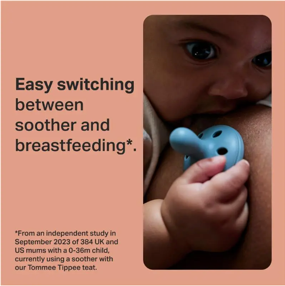 Soft to touch and barely-there, this soother looks and feels like a breast. With a familiar shape and skin-like feel, it's made to support your feeding journey, and specially designed to help reduce nipple confusion with continuous comfort and a natural latch.