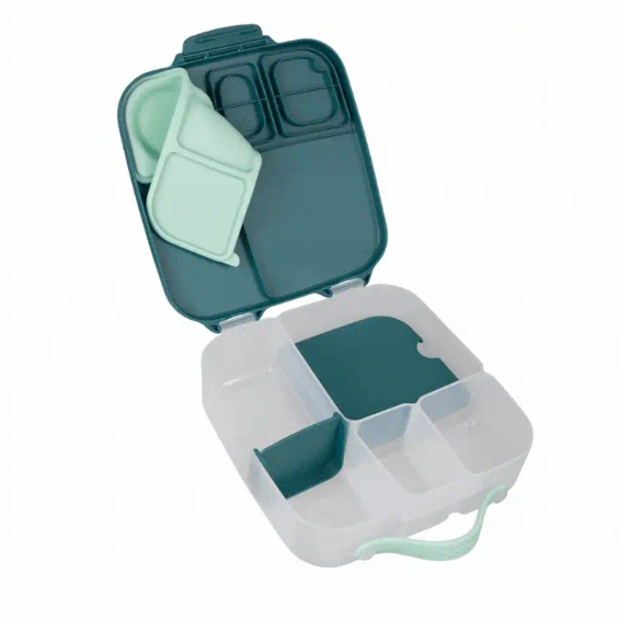 The whole foods lunchbox. Kids love different choices throughout the day, so we’ve designed a lunchbox that offers parents and kids more flexibility. The lunchbox features a large compartment that fits a whole sandwich. Plus, sitting underneath the tray is an included gel cooler pack to keep food fresher and cooler for longer. Or, remove the sandwich tray and the compartment now easily fits pasta and salads. Its unique flexi whole fruit holder lets you store a whole apple, as the stretchy seal bends around the shape of your fruit – no need to cut fruit into smaller sizes! Leak-proof silicone seals lets you store wet foods like watermelon and yoghurts (no liquids). The custom divider slides across enabling parents to adjust the compartment size as they need, or remove it to fit a whole banana or wrap.
