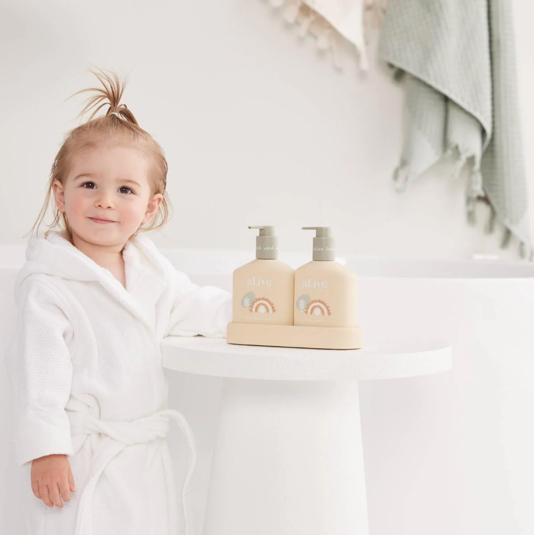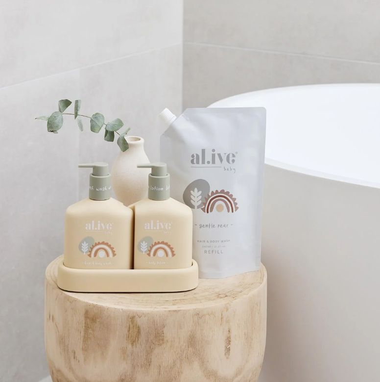 The new look design of this much-loved product features a new colour bottle and playful illustrations, adding a touch of fun to bath time. The al.ive baby Hair and Body Duo in Gentle Pear is a must-have for parents who want to use gentle and nourishing products on their baby's delicate skin.