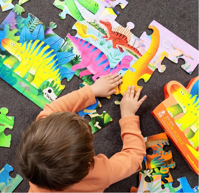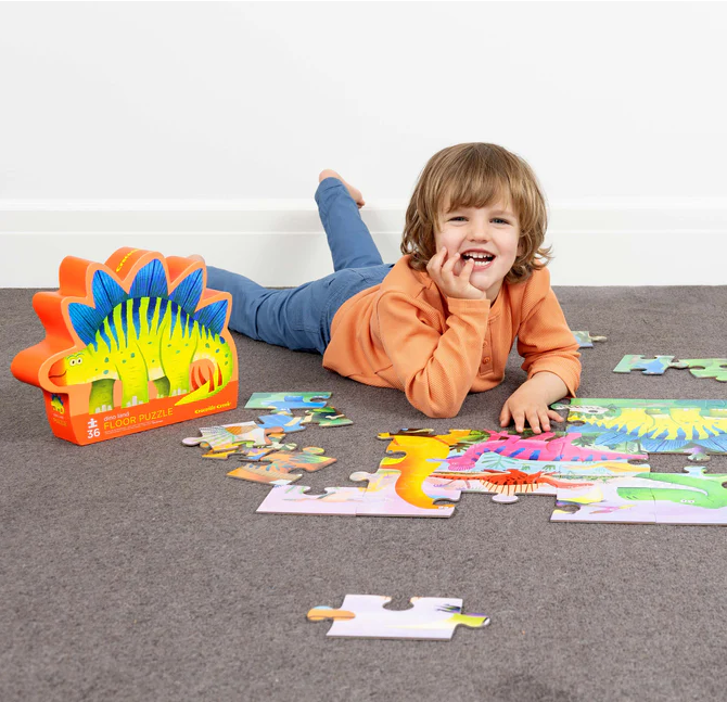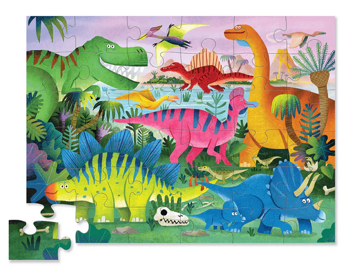 Little dinosaur enthusiasts can brush up on their dino-identification in this beautifully illustrated 36-piece floor puzzle. All wrapped up in its unique contour-shaped storage box, the jumbo, sturdy pieces of this high-quality puzzle are ideal for little hands.