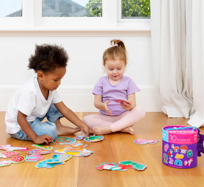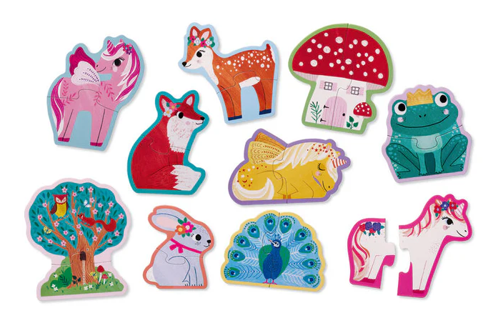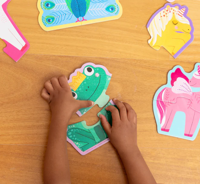• 10 different 2-piece puzzles with pieces perfect for little hands