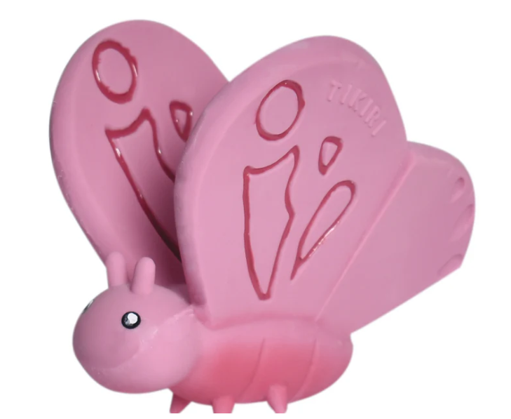 This adorable Butterfly from our Garden Friends Collection brings comfort and joy to bath time and bedtime. Made from all-natural rubber, it's perfect for teething, easy for tiny hands to grip, and features soft and firm parts to soothe irritated gums. An enclosed rattle adds gentle sensory stimulation for newborns.