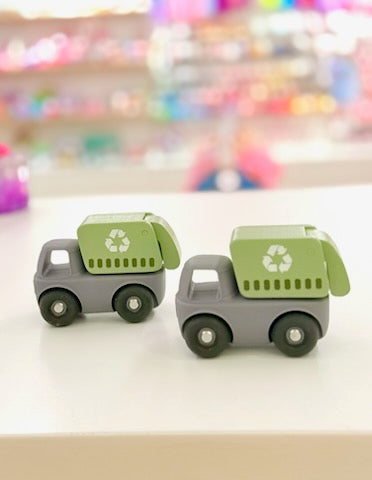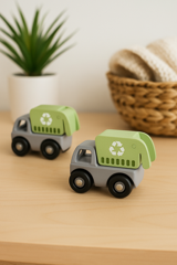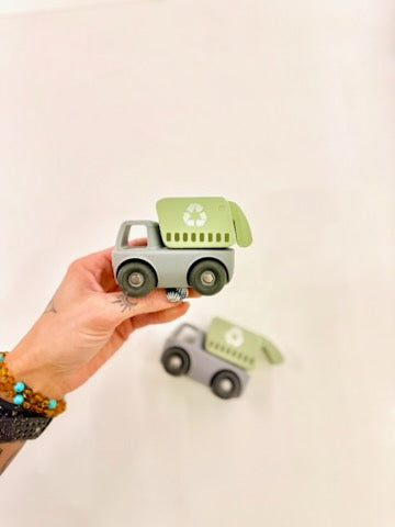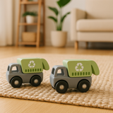 Little eco-warriors will love this sturdy and sustainable push-along truck! Made from a combination of smooth natural wood and soft, durable silicone, this mini recycling truck encourages imaginative play while teaching little ones about caring for the planet. The painted wooden recycling compartment adds a pop of green charm, and the easy-roll wheels make it perfect for small hands to push and explore.