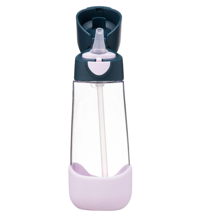 Its 600ml capacity and angled silicone straw lets kids drink to the very last drop and stay hydrated throughout the day. Minimal parts and ultra easy to assemble / disassemble and clean. Dishwasher safe.   Plus, customise the look with removable bumper