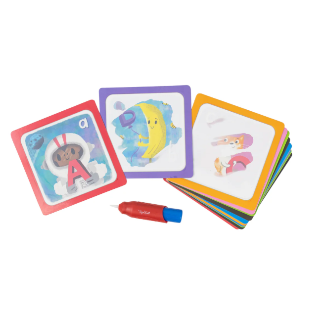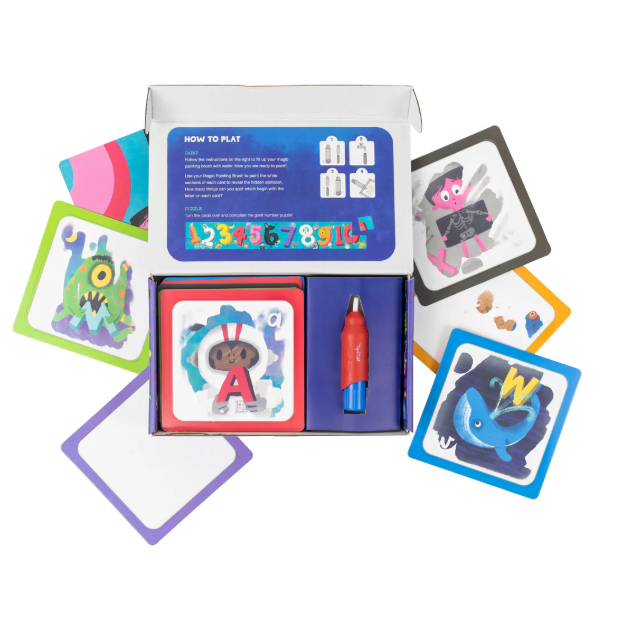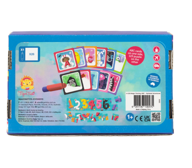 The 26 high-quality cards feature an A to Z of alphabet illustrations on one side (revealed with water) and a jumbo counting puzzle on the other provides additional play opportunities.