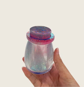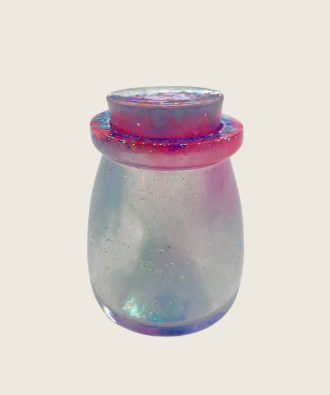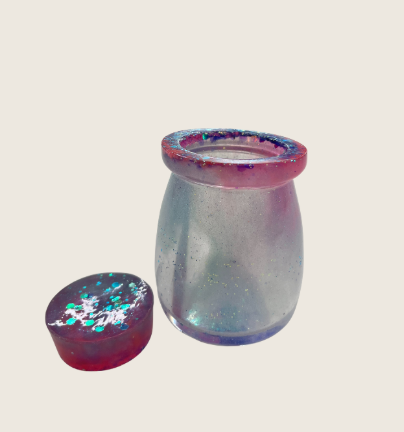 Each pot is poured in dreamy swirls of purple, pink, and blue, with a soft opaque finish and glimmering accents that sparkle like sunlit waves. Topped with a natural cork lid, it’s perfect for sealing in your treasures, potions, or sensory play mixes.