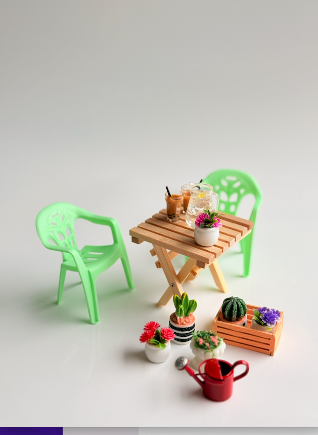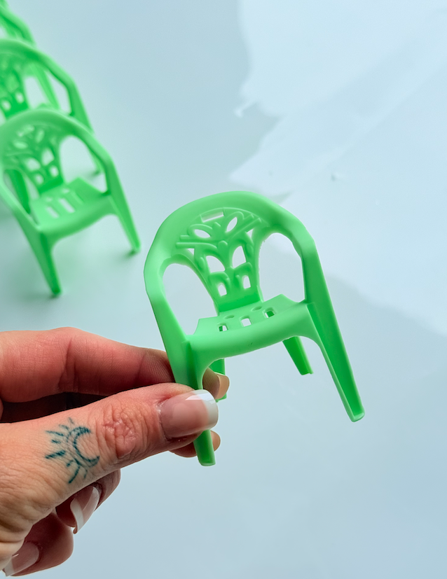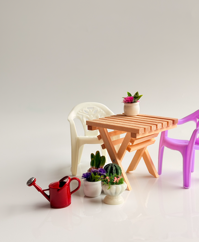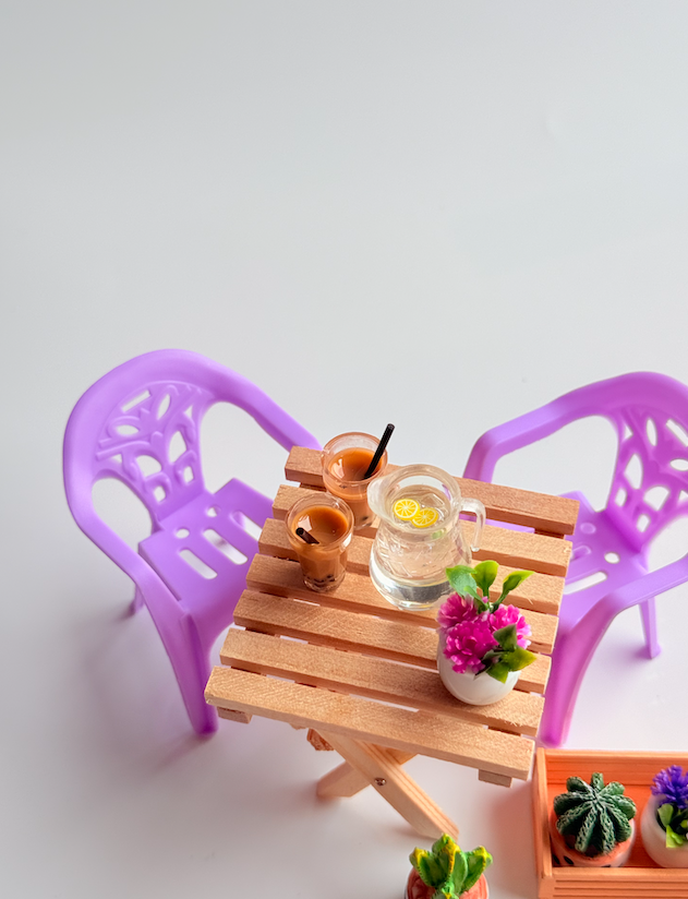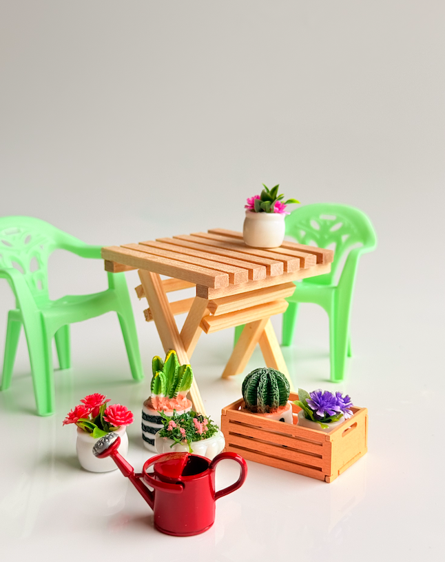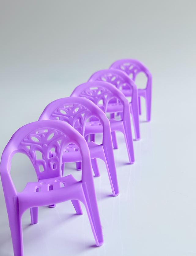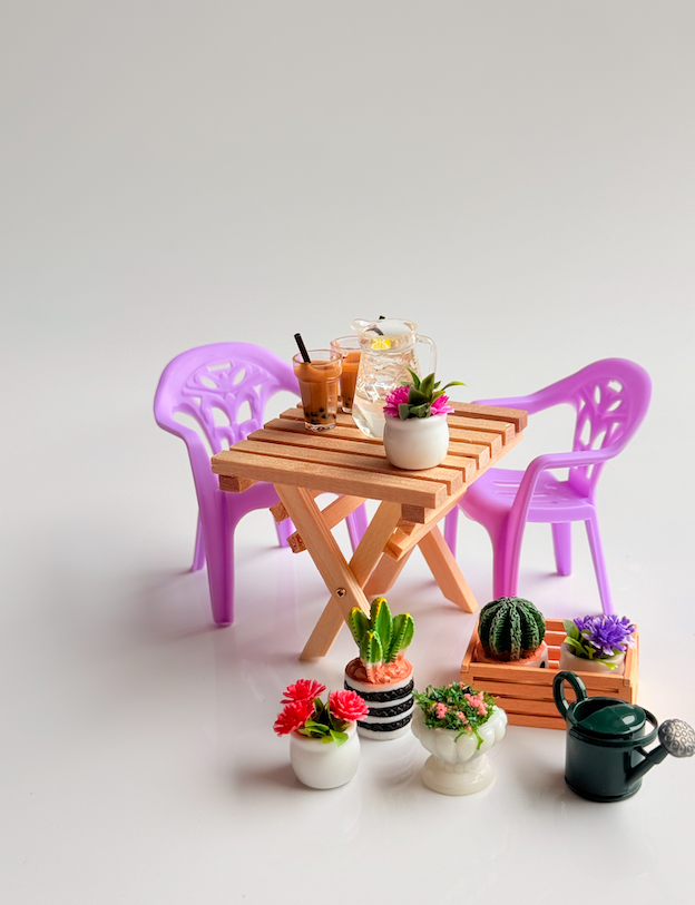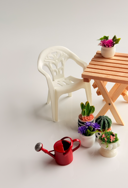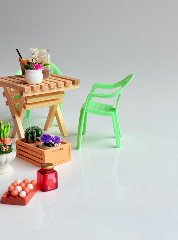 These sweet Mini Outdoor Doll Dining Chairs are perfect leading pieces for any dollhouse patio, garden, or café-style setup. With their classic outdoor chair design and playful colours, they add a fun pop of personality to miniature dining scenes.