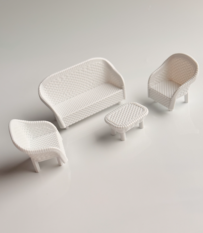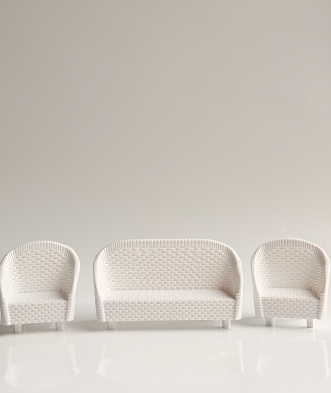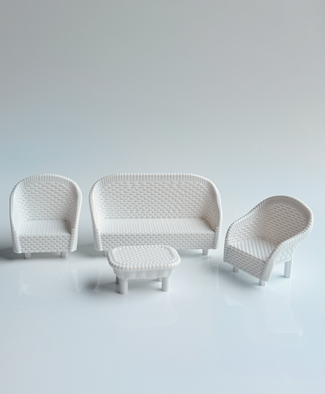 This beautifully crafted Mini Wicker Lounge Set is a timeless addition to any dollhouse or small-world play setup. Finished in soft white with a delicate woven texture, the set brings a light, relaxed feel to miniature indoor or outdoor scenes.