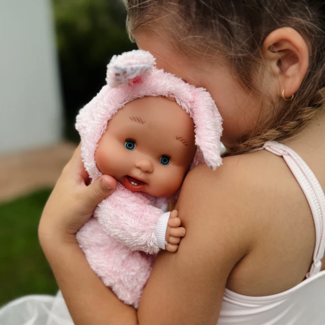 Meet the adorable Pepote Original Funtastic Bunny! This charming doll comes dressed in a handmade soft bunny outfit, available in cream or pink colors.