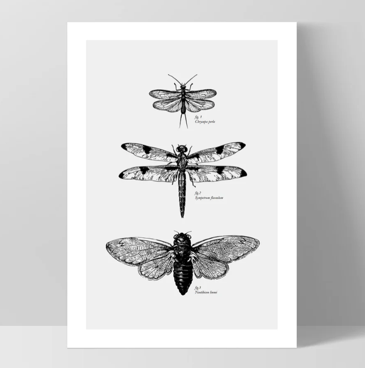 Winged Insects Entomology Lacewing, Dragonfly & Cicada - Art Print