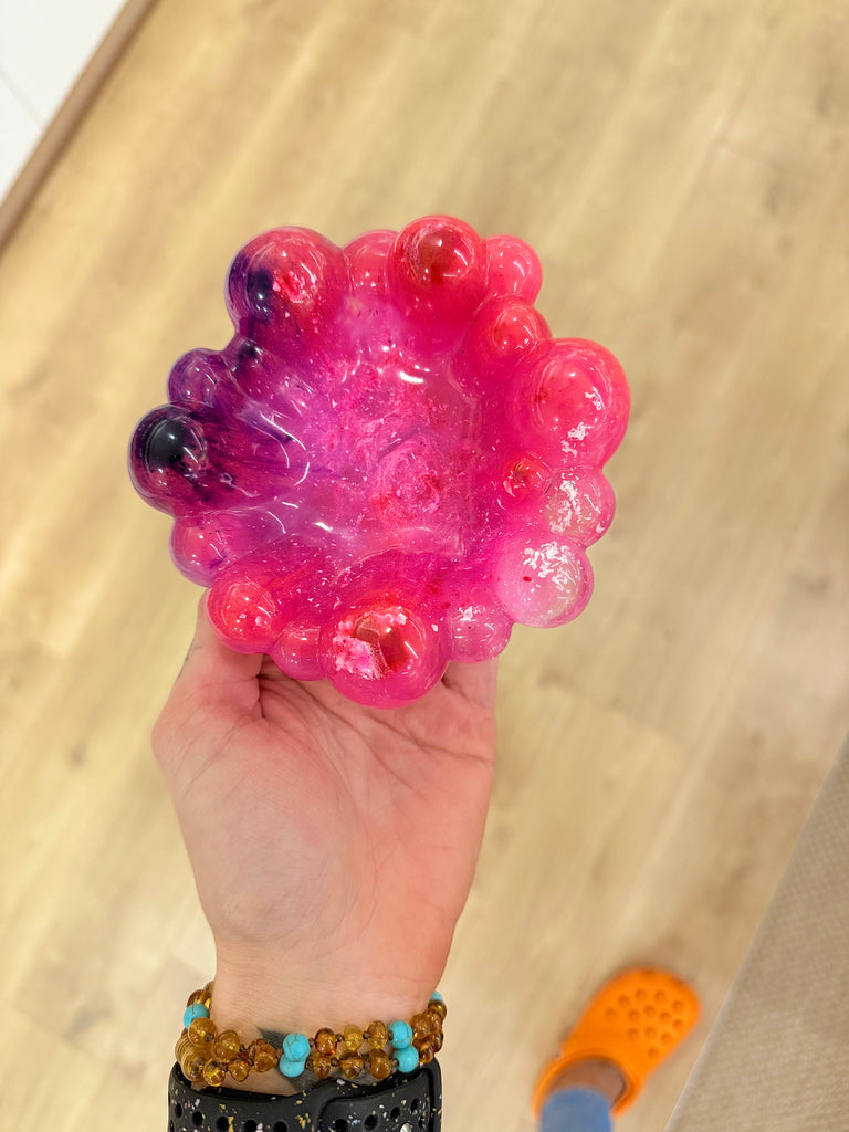 Resin creates tiny air pockets when poured — in this design, those bubbles are intentional! The rounded edges form as the resin naturally settles around the mould, giving each bowl a perfectly imperfect, organic “bubble” shape that’s irresistibly touchable.