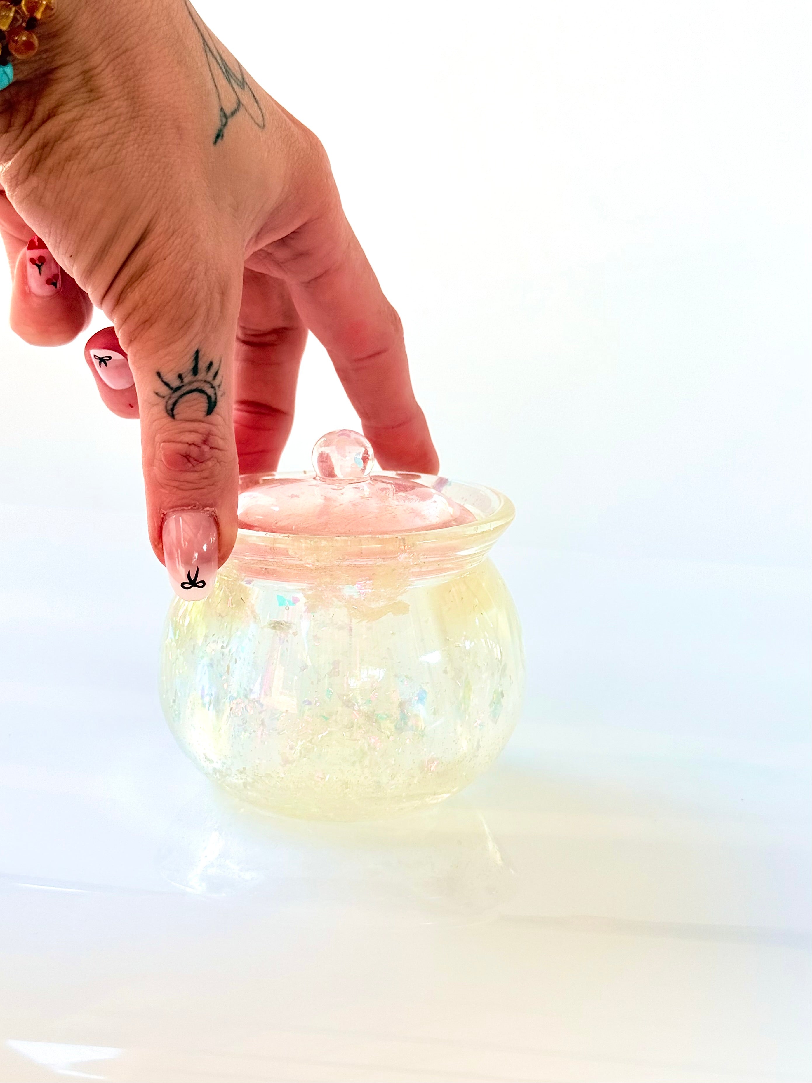Each pot is individually poured, making every one unique in shimmer, clarity, and internal details.