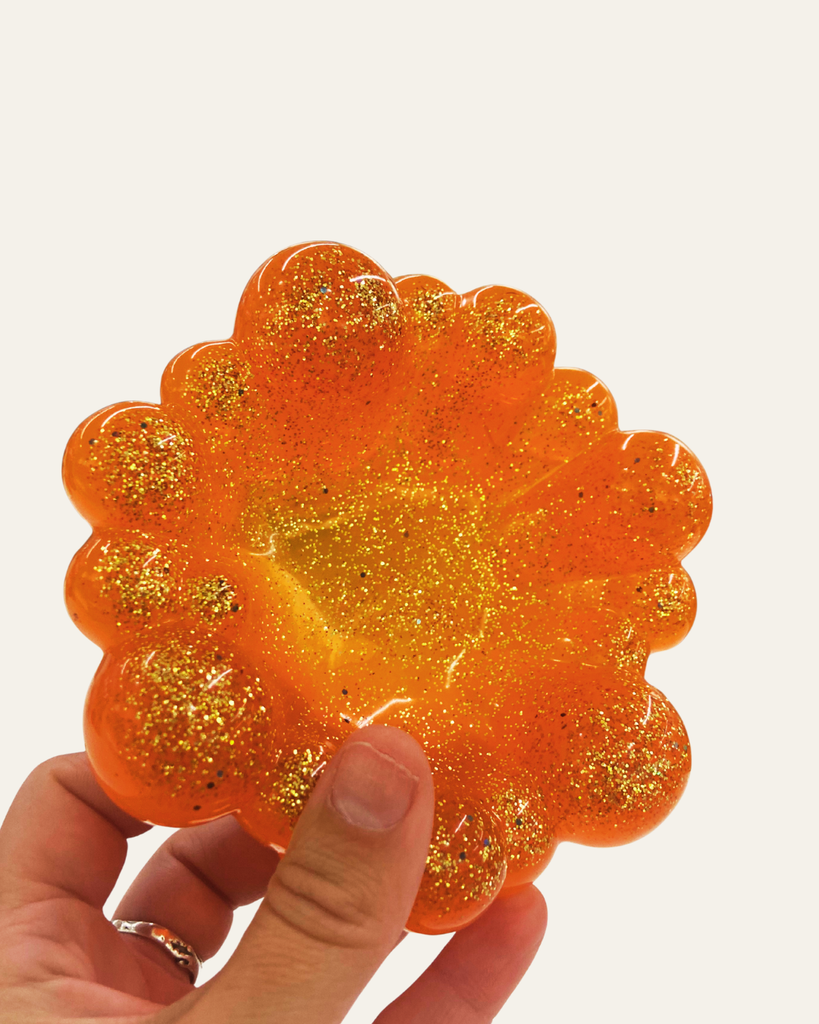 A bright explosion of orange magic — this Cloud Resin Bowl has a stunning glitter-infused effect that looks like a burst of sunshine trapped in resin.