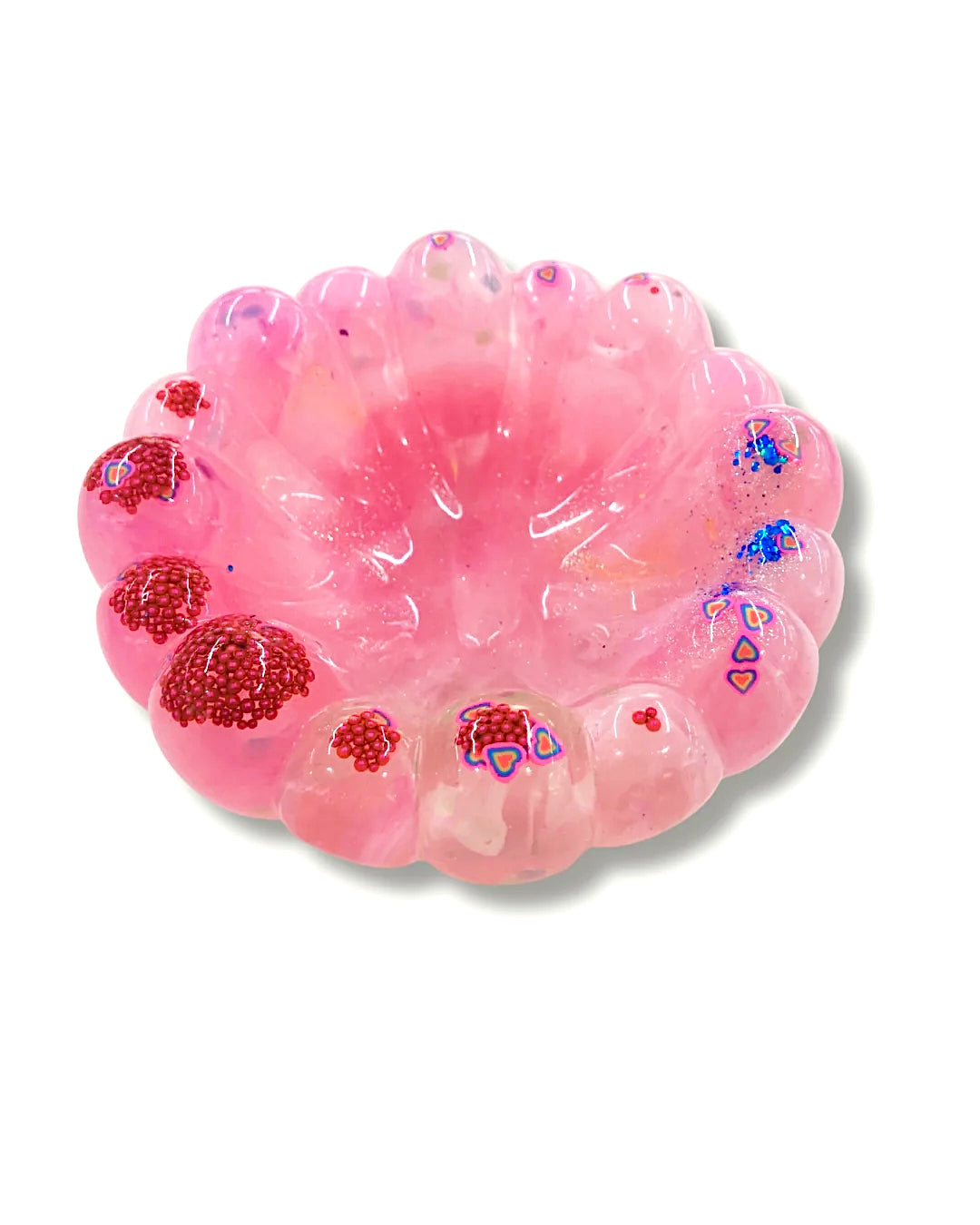 Soft, dreamy and pastel sweet — this Cloud Resin Bowl features a swirl mix of light pink and white resin, creating a gentle cloudy effect throughout the bowl. Along the cloud edging are adorable rainbow hearts sealed inside, giving it that extra touch of magic and colour pop.