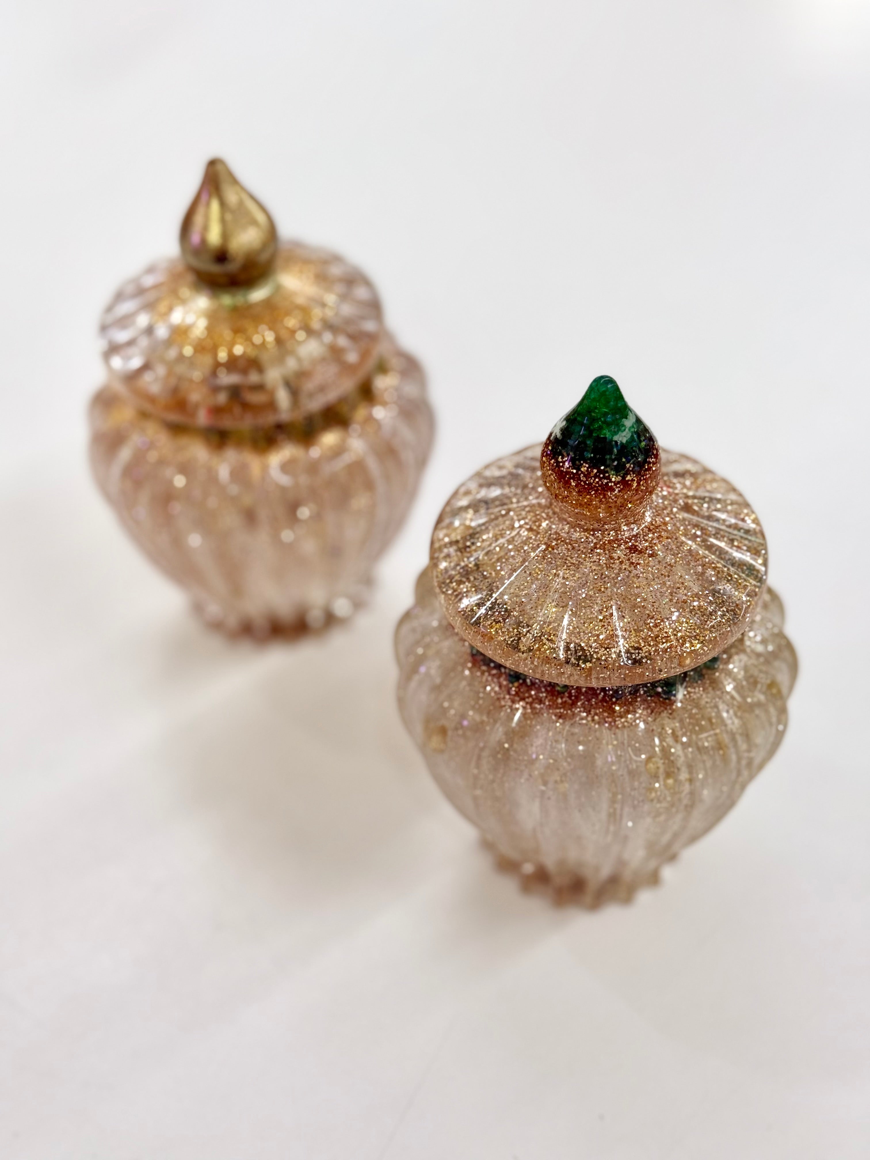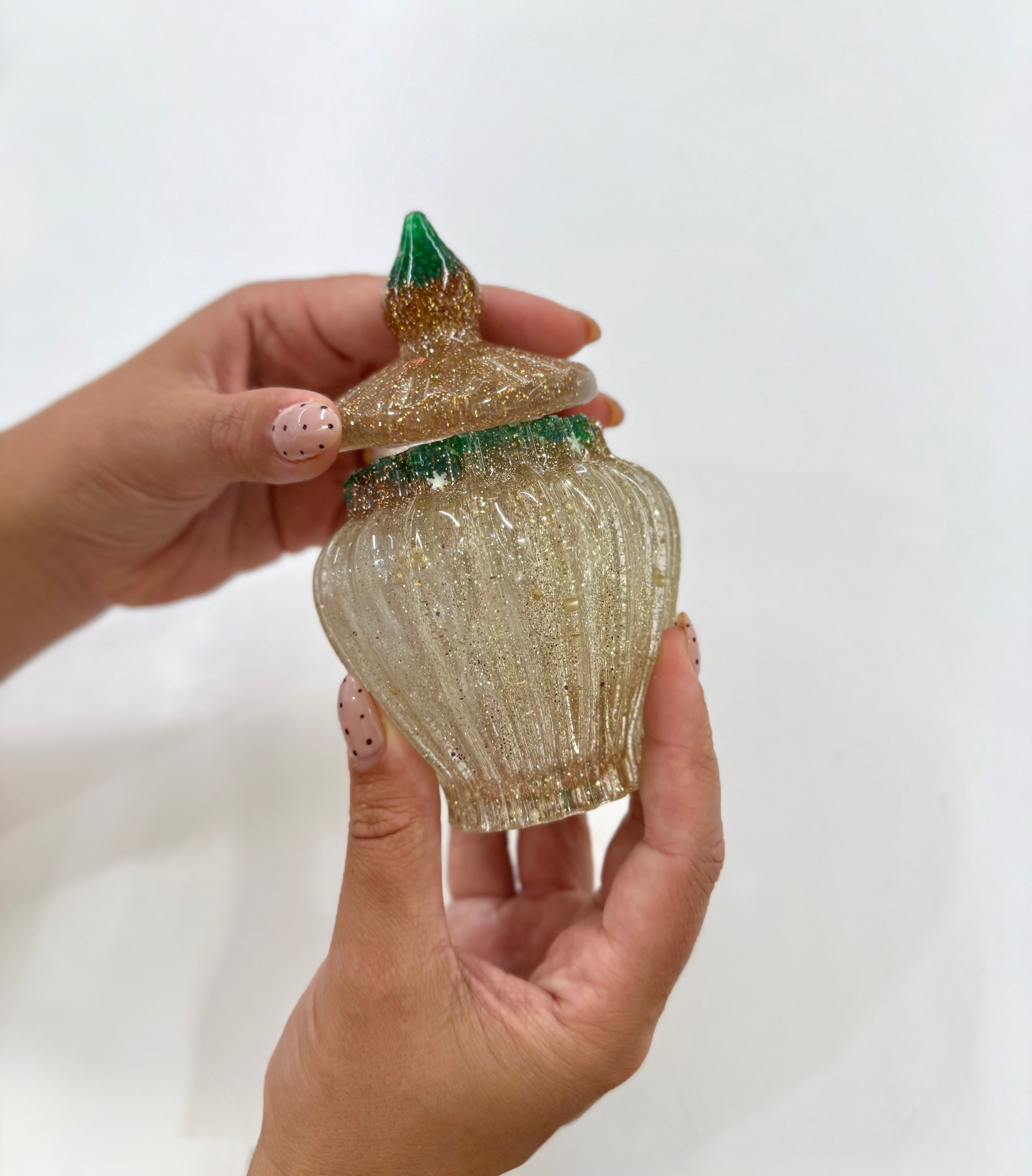 A stunning handmade resin pot that shimmers with rich golden glitter. Opaque, sturdy, and full of sparkle, this little treasure is perfect for potion play, sensory play, spell jars, trinket storage, or simply adding a touch of magic to your shelf or altar.