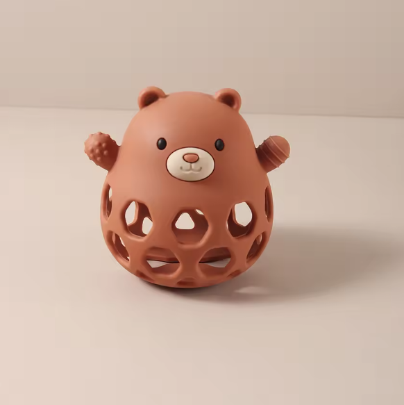 Soft, friendly + easy to grip — this adorable bear teether features flexible openings for little hands to hold, squeeze, and explore. The textured bear arms offer extra tactile stimulation, while the rounded hollow body makes it lightweight for early play.