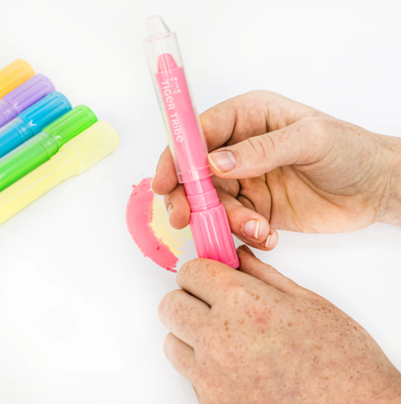 Pastel Silk Crayons have a satisfying silky feel with beautifully, muted coloured results. Extend playtime with window drawing or bathroom tile art, rock painting, watercolour art and more. Each mess-free Pastel Silk Crayon is housed in a twist-up tube to help keep little fingers clean.