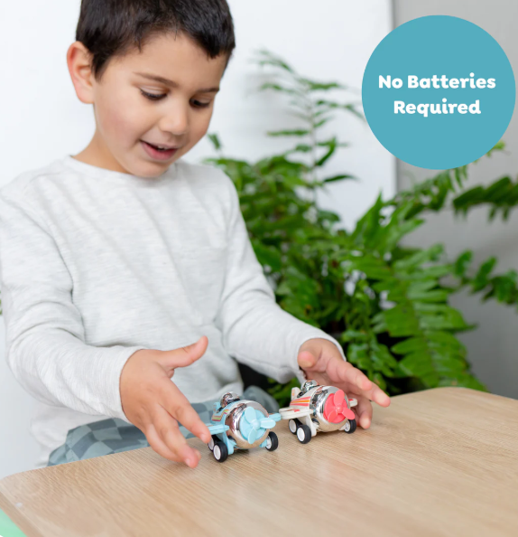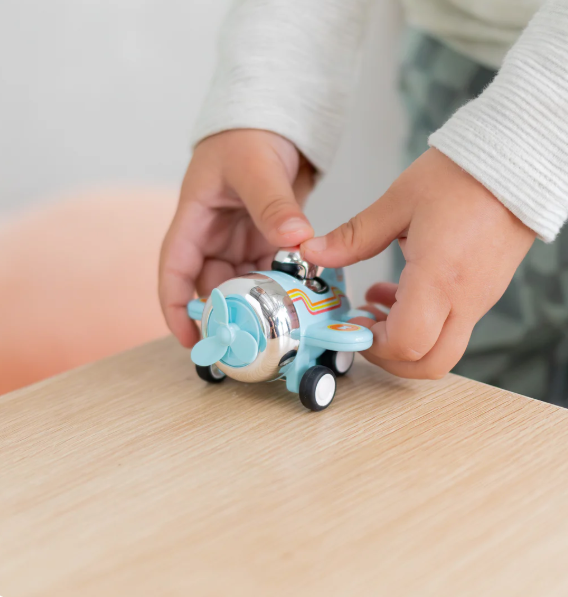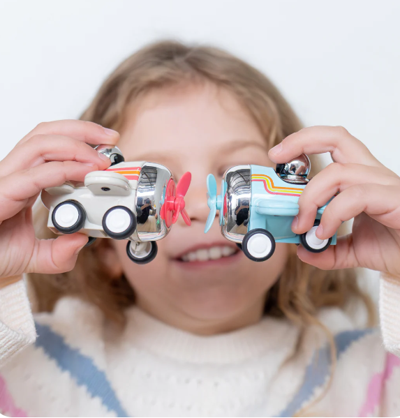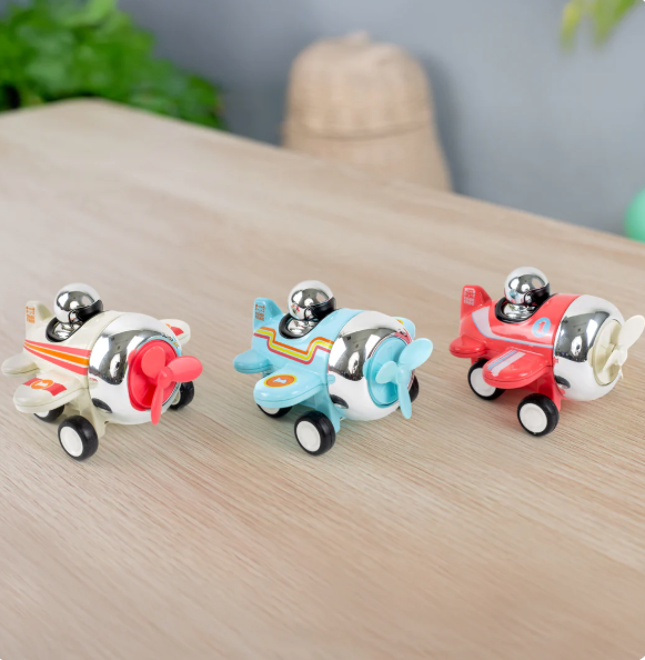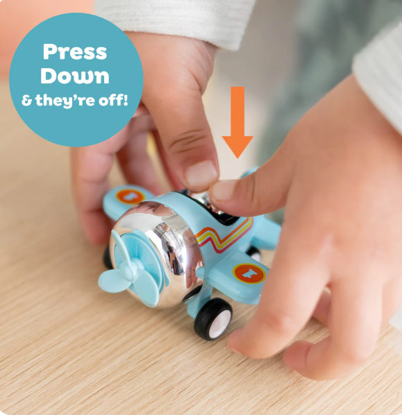 Hey, presto! This retro mini racing plane is ready to roll (not fly). Kids will have a hoot with these nimble little battery-free vintage-styled planes. Activate the propulsion mechanism with a simple press-down of the pilot, and they’re off! In three fun and collectable designs.