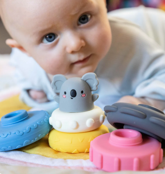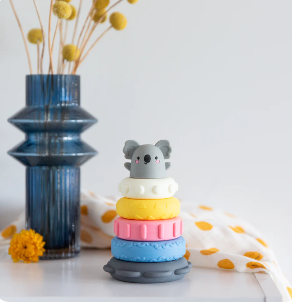 The ultimate baby shower gift, our cute Silicone Stacker - Koala, is a multi-coloured and multi-purpose sensory sensation!