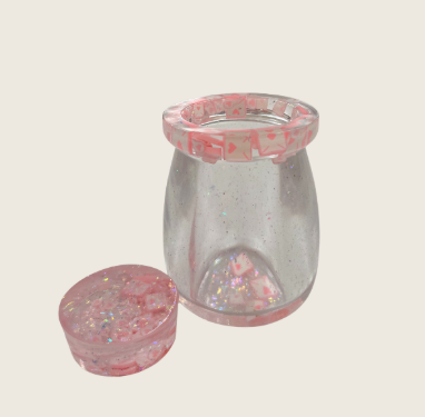 A beautifully handcrafted resin pot with a soft opaque finish, packed with shimmering glitter for a magical, dreamy look. Each pot comes with a cork lid, perfect for sealing in your treasures, potions, or sensory play mixes.