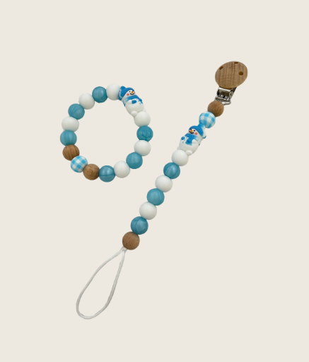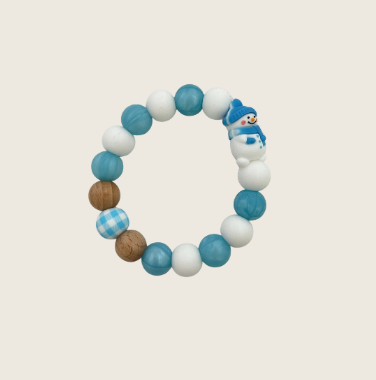 Bring a frosty touch of magic to soothing time with this adorable Winter Wonderland–themed teether. Featuring a cheerful snowman silicone feature bead and paired with coordinating blue and white beads reminiscent of snowy skies and sparkling ice, it’s perfect for little hands to grasp and explore.